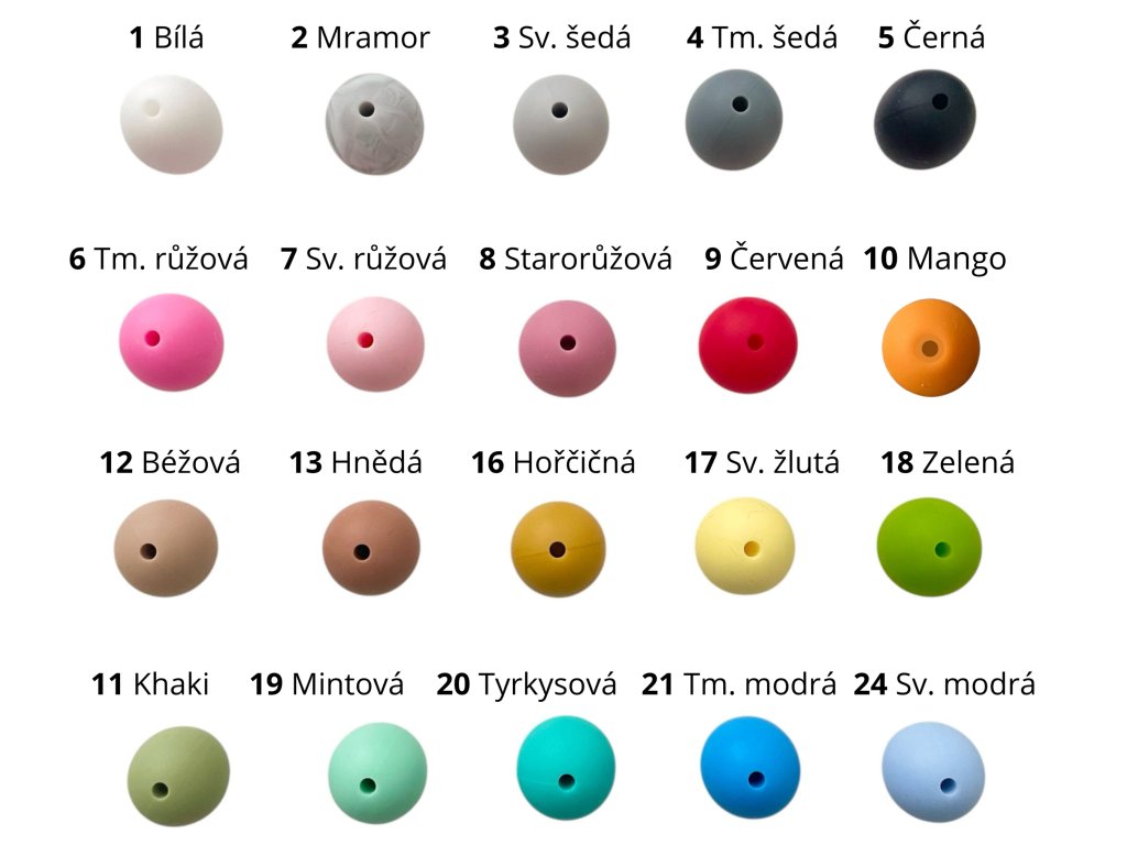 - 100% potravinářský silikon, nylonová šňůrka, kovová úchytka (neobsahuje nikl ani olovo).