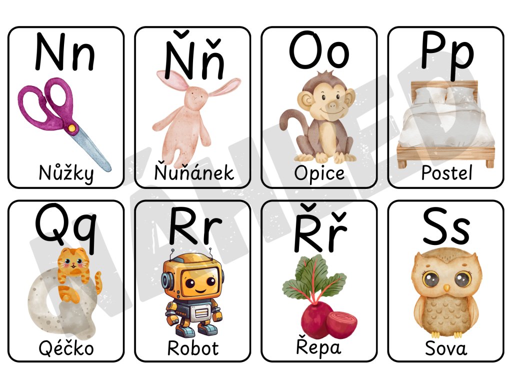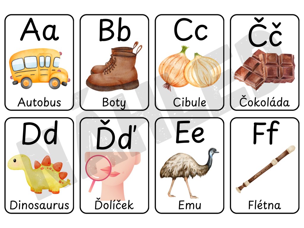 Ať už hledáte pomůcku pro výuku abecedy, procvičování pojmů, nebo zábavný způsob, jak s dětmi mluvit o světě kolem nás, tyto kartičky vám pomohou učit i bavit zároveň.
