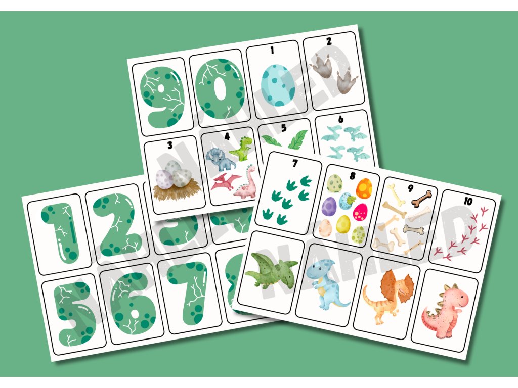 Komunikační kartičky - ČÍSLA DINO ZELENÉ (24ks)