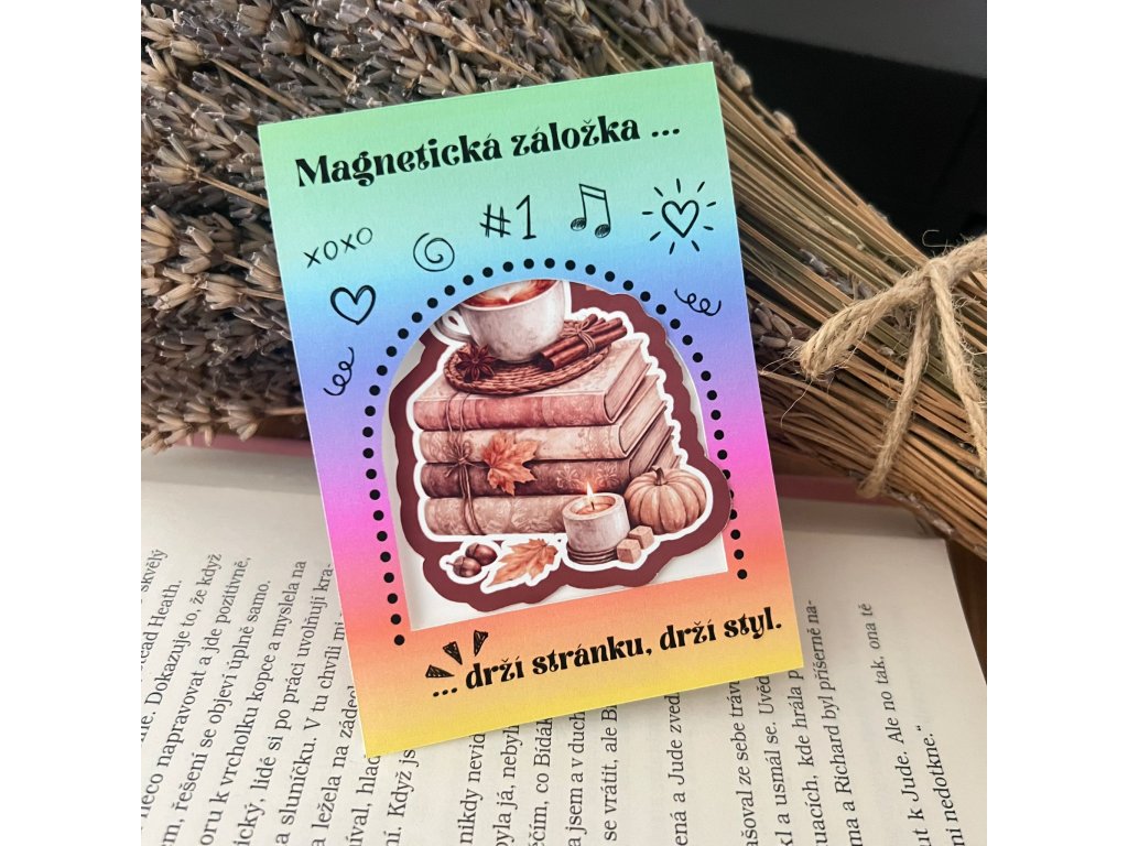 Tato magnetická záložka s motivem knih a kávy je jako stvořená pro chvíle klidu s oblíbenou knihou. Přehne se přes stránku a díky magnetům pevně drží na svém místě – žádné vypadávání ani ztracené stránky.