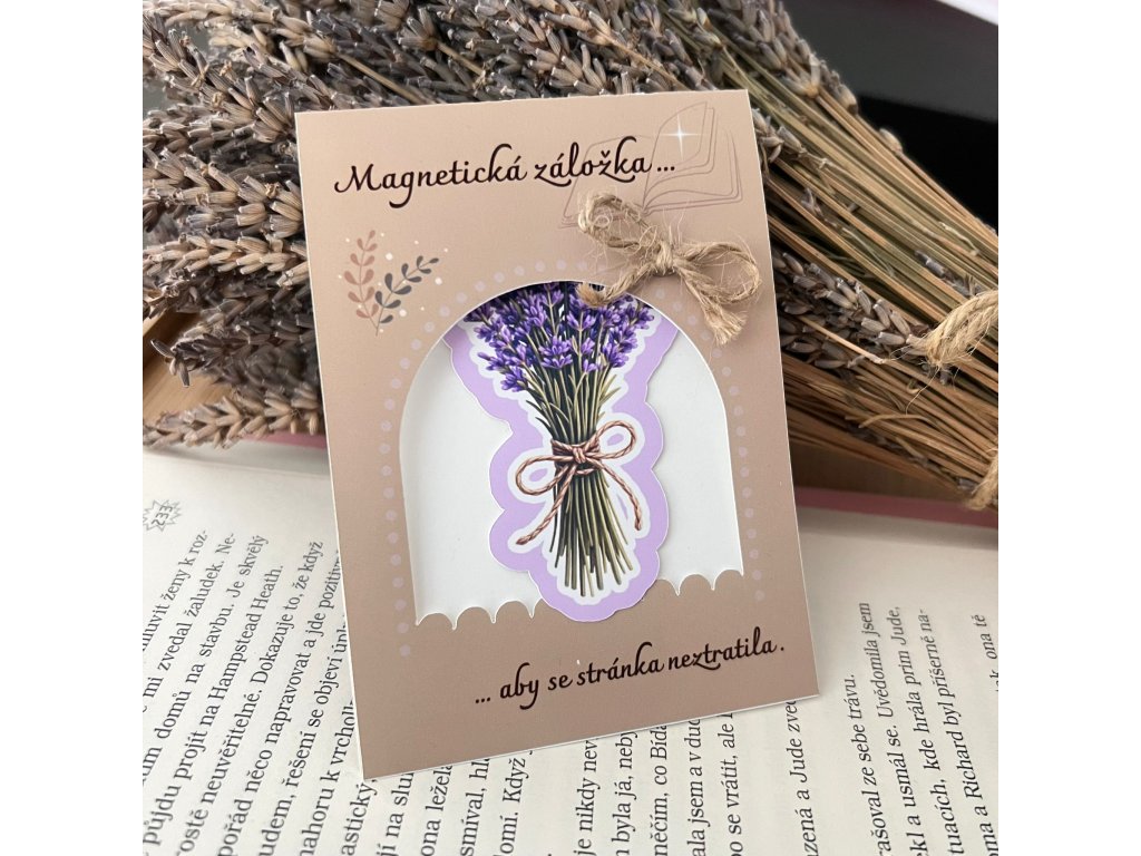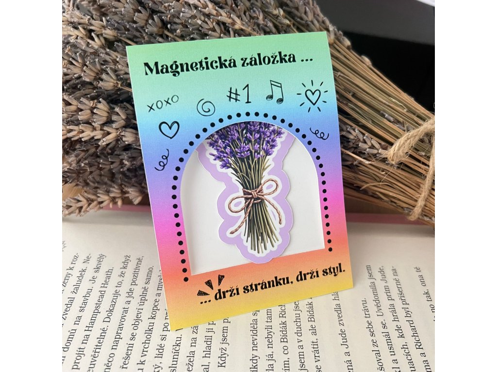 Magnetická záložka s motivem levandulové kytice vnese do každého čtení kousek klidu a pohody. Jemný ilustrativní design inspirovaný přírodou krásně doplní knihu doma, na cestách i jako milý dárek pro čtenáře.