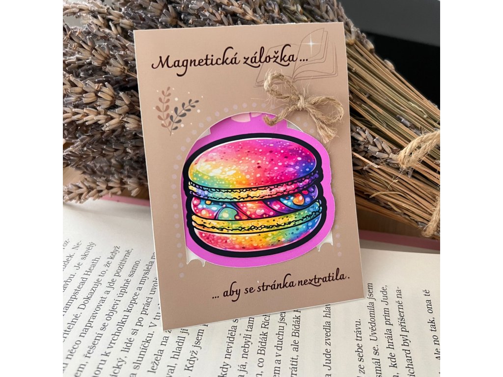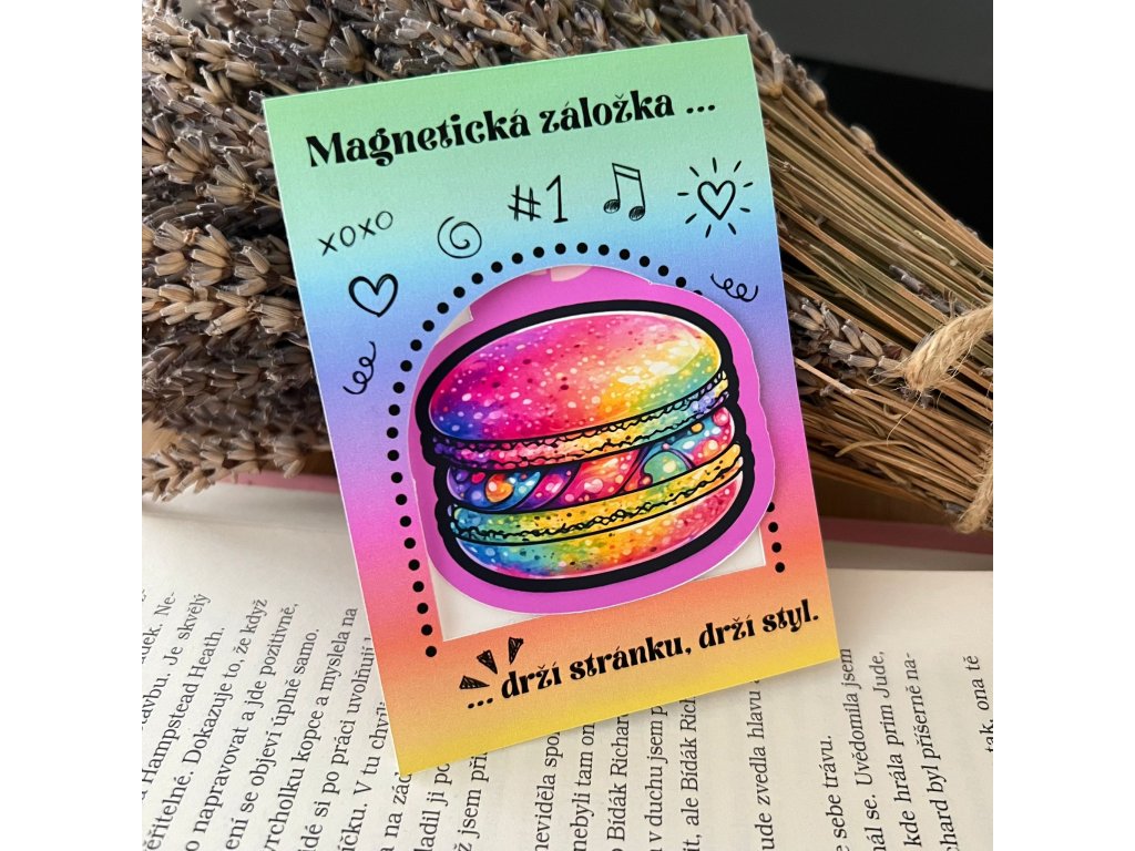 Tahle magnetická záložka s barevnou makronkou je malá radost pro každého milovníka knih, barev a detailů. Díky magnetickému uchycení spolehlivě drží stránku na místě a zároveň slouží jako stylový doplněk do knížky, diáře nebo zápisníku.