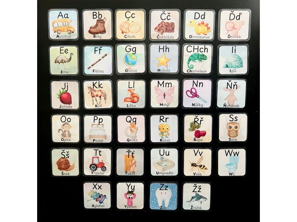 Každé písmeno je doplněno obrázkem, který dětem pomáhá s porozuměním a zapamatováním. Magnetky jsou ideální jak pro samostatné objevování, tak pro společné hraní s rodiči.