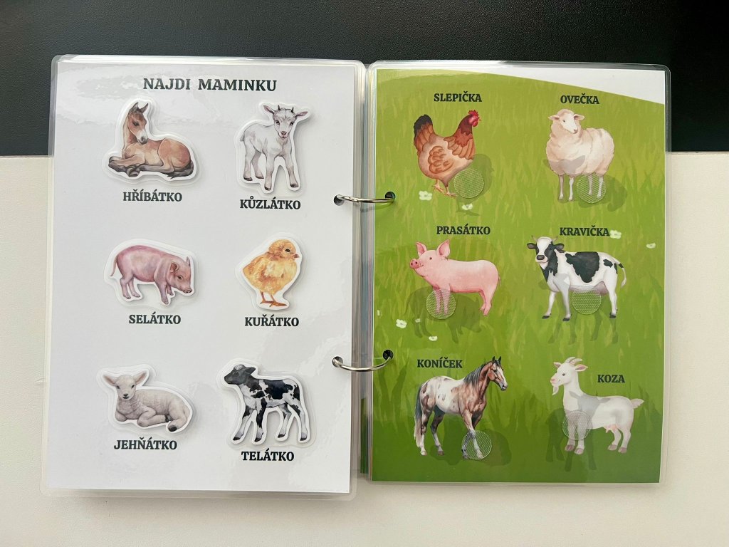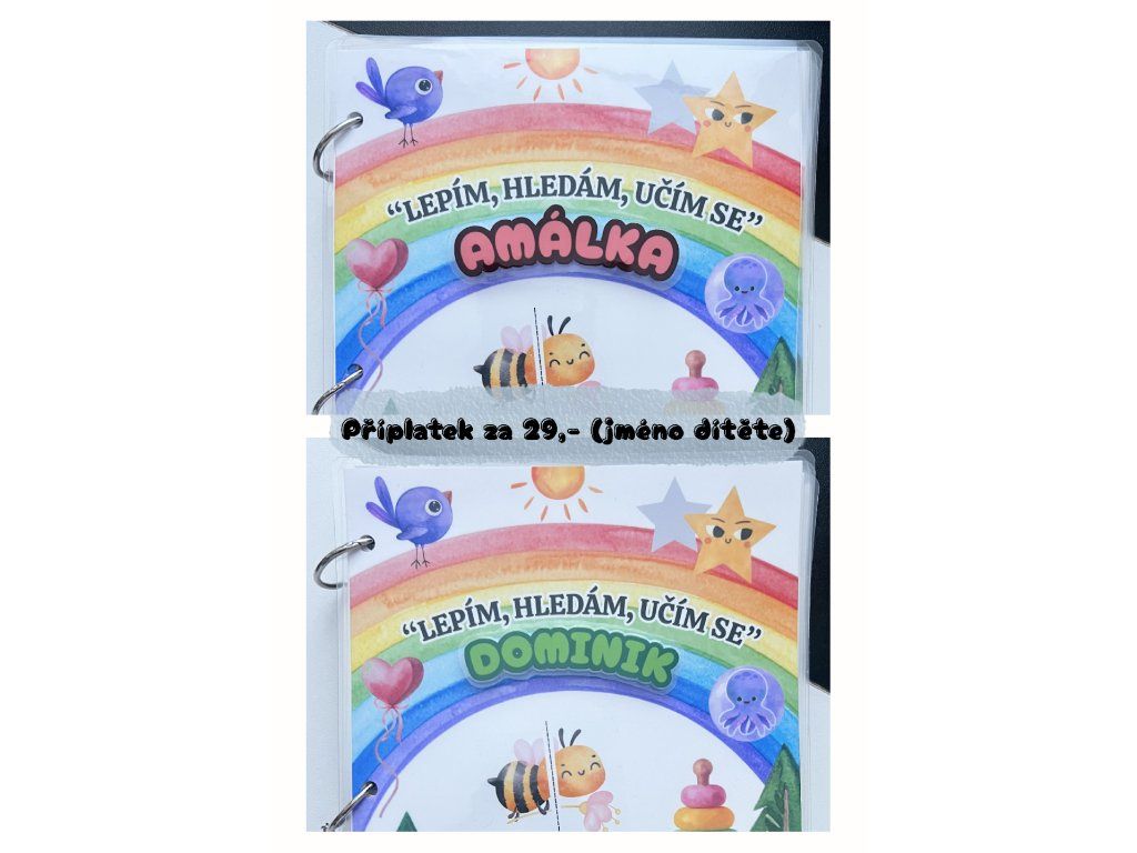 - 🛠️ Každý kus vyrábím ručně – tisk, laminace, stříhání i kompletace. Díky tomu je každý kus originál a kniha je velmi pevná, odolná a připravená na časté používání malými ručičkami.