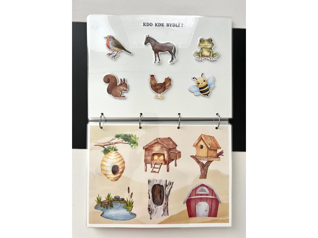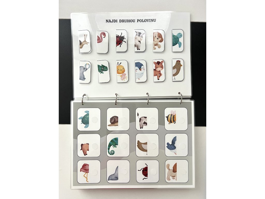 Tato ručně vyráběná interaktivní knížka je navržena tak, aby malé děti zapojily ruce, oči i hlavu. Každá stránka obsahuje aktivitu, kterou dítě řeší pomocí odnímatelných dílků na suchý zip – přiřazování, skládání, hledání či třídění.