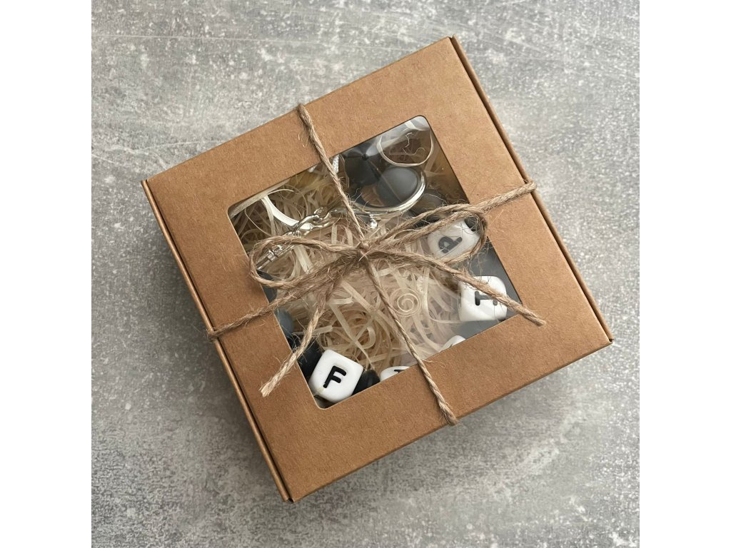 - Průhledný sáček s puntíky nebo dárková krabička za příplatek.